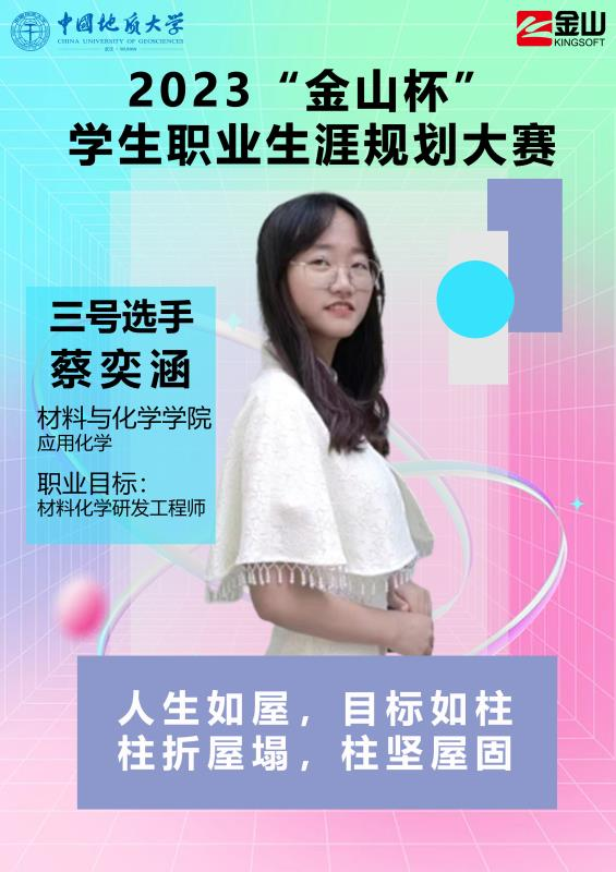 2022级本科生蔡奕涵将料化学研发工程师作为职业目标。她认为自己未来会成为一名研究生,通过不断积累基础知识、加强实践能力来达到自己的理想职业目标,基于此蔡奕涵同学对自己的学习生涯制定了十分详细的规划,相信能够为成为高精尖的科研型人才打下坚实的学科基础。