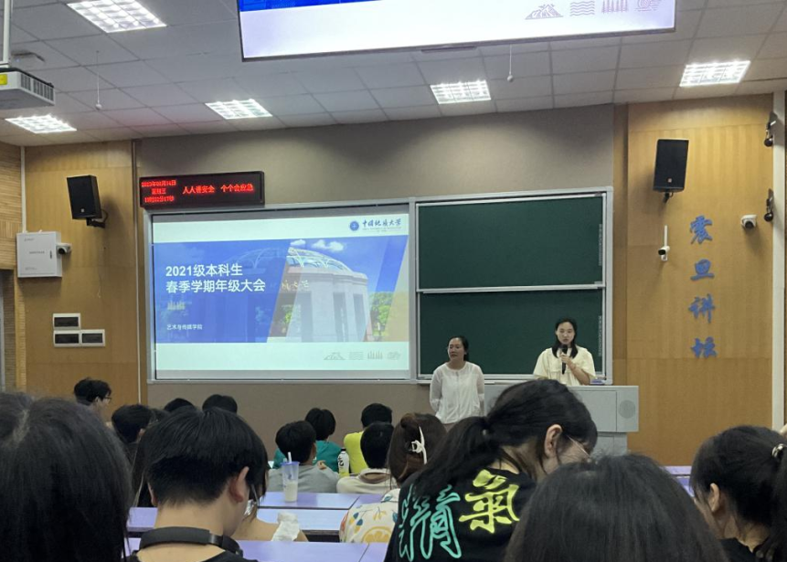 2021级本科生春季学期年级大会于教三楼110准时召开,会议由2021级辅导员曾戈晖主持,果冻传媒