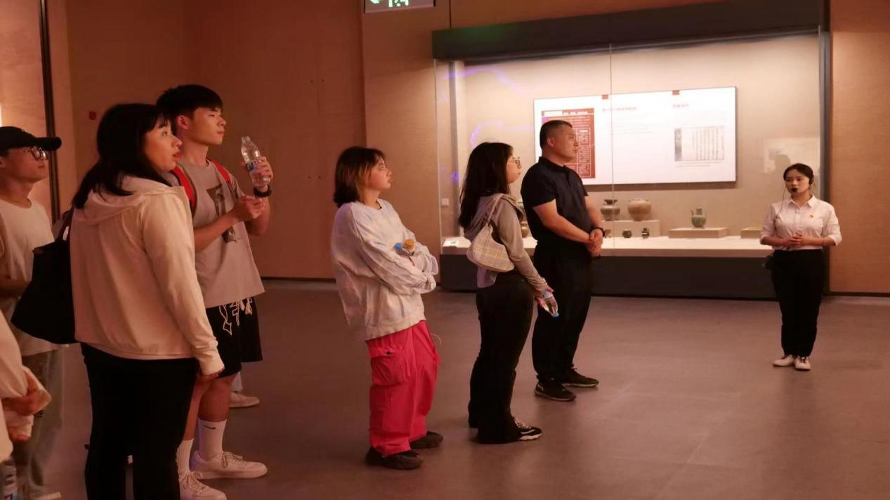 九里阳光艺术实践团团长邵梦华:通过社会实践调查,走访了北庭故城遗址博物馆,整个展馆以视频、图像和文字的形式,为我们科普了丝绸之路的起源及历史演变;通过陈列的陶尊、鸡首壶等530余件各类精品文物,让我们了解到了在西域地区中原王朝对安西、北庭等军政设施的建设、利用和维护,感受到了从汉到唐,汉民族与各民族文化的交流与融合。我们一走进博物馆,就让人感觉眼前一亮,整个馆展文物与高科技的融合,为沉睡的北庭故城历史建筑和文化赋予了全新的活力。