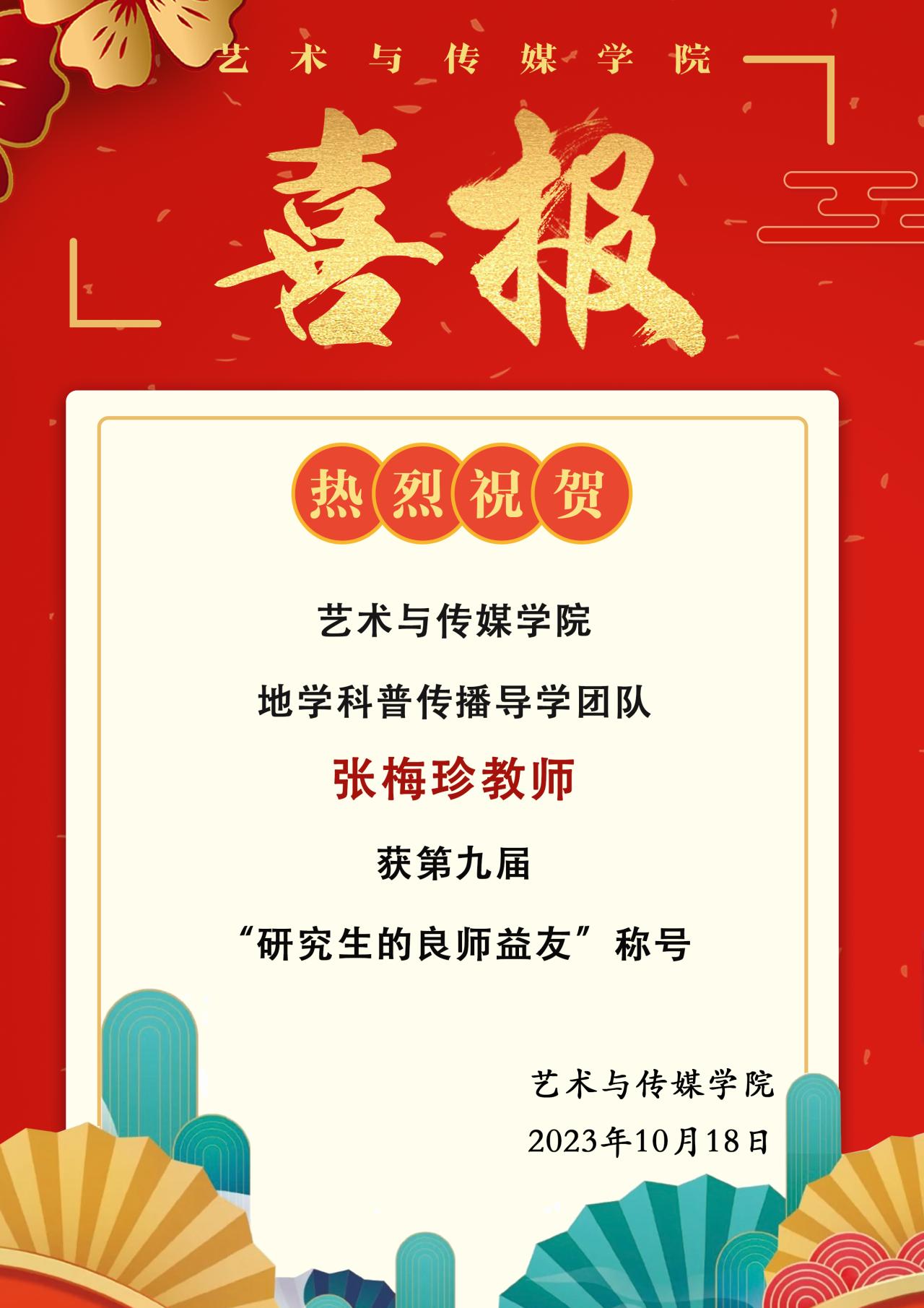 喜报 | 热烈祝贺果冻传媒 张梅珍教师荣获第九届“研究生的良师益友”称号