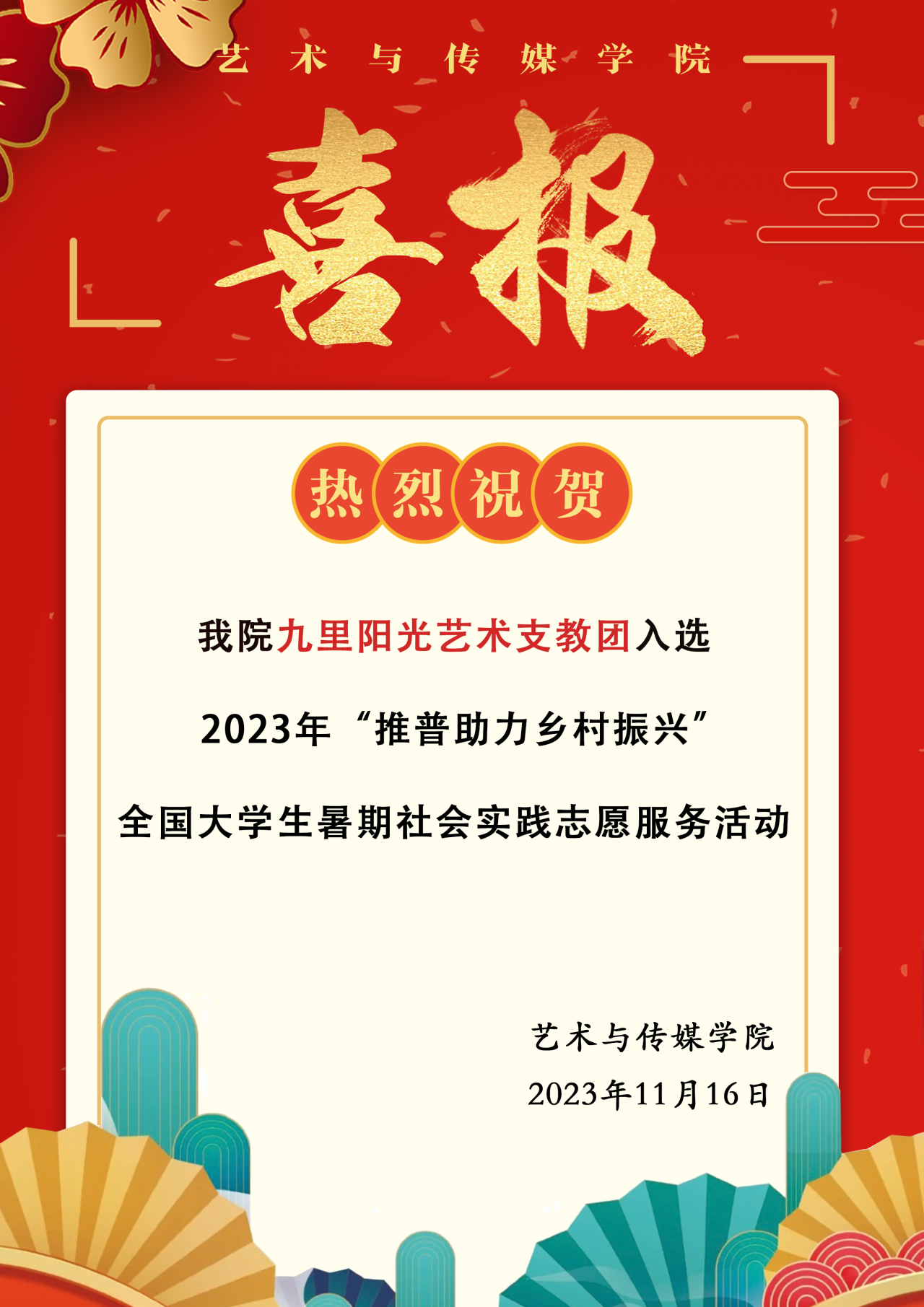 喜报|热烈祝贺果冻传媒 九里阳光艺术支教团入选2023年“推普助力乡村振兴”全国大学生暑期社会实践志愿服务活动
