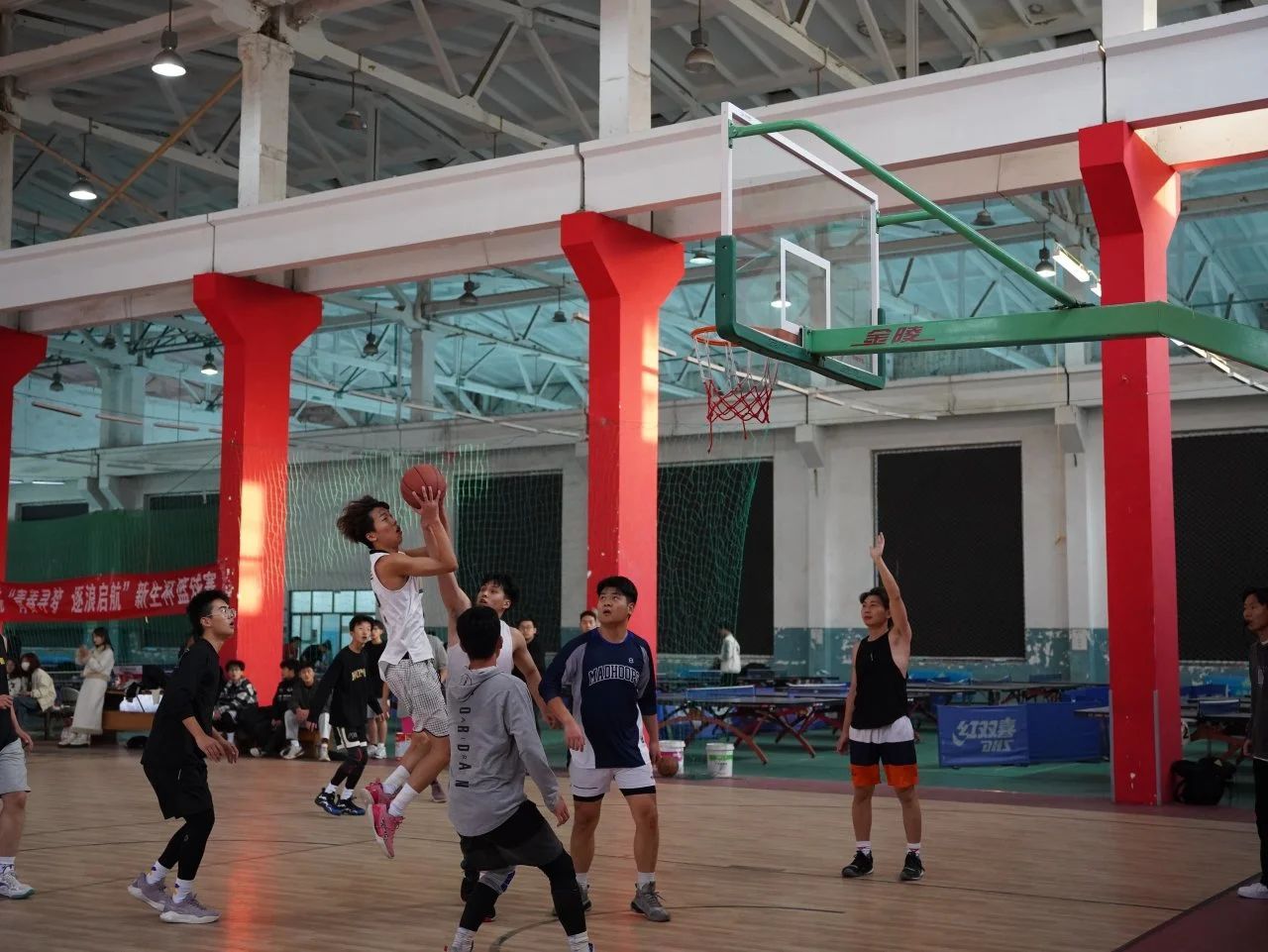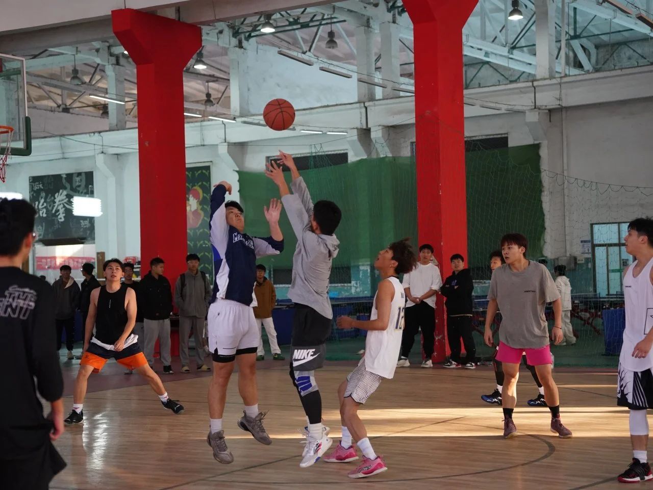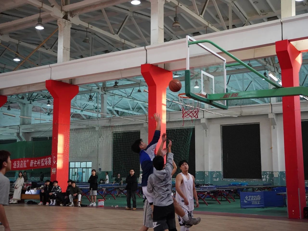 2023“新生杯”篮球赛于北区体育馆举行,第一场比赛由来自果冻传媒