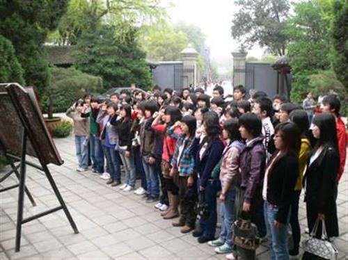 05、06、07级艺术设计学生党支部在武昌农民运动讲习所开展了以“重温革命历史,永做党的传人”为主题的革命传统教育活动。支部的所有党员共计56人参加了此次活动,在农讲所相关工作人员的带领下所有成员都认真地参观了讲习堂、训练场等具有纪念意义的场馆,通过工作人员的讲解全面地了解讲习所的历史和那段艰苦而又光辉的革命进程。