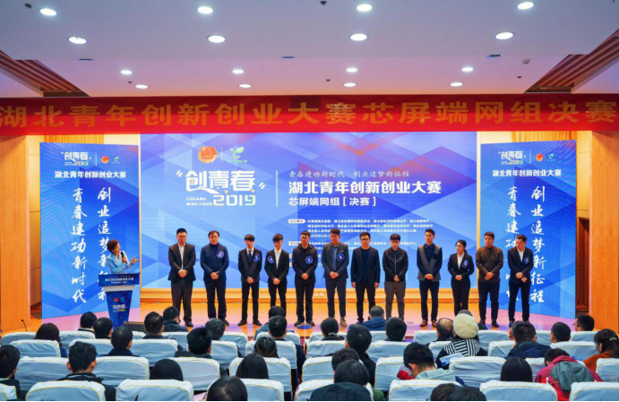 (通讯员:陈习良)青春因“双创”而闪亮,“双创”因青年而精彩!11月27日下午, 2019年“创青春”湖北青年创新创业大赛芯屏端网组决赛暨总决赛颁奖典礼在武汉理工大学成功举办。团省委副书记师建兴、省人社厅副厅长董长麒、洪山区副区长陈敏、洪山区科经局局长李绪杰等领导出席大赛并为选手颁奖。果冻传媒