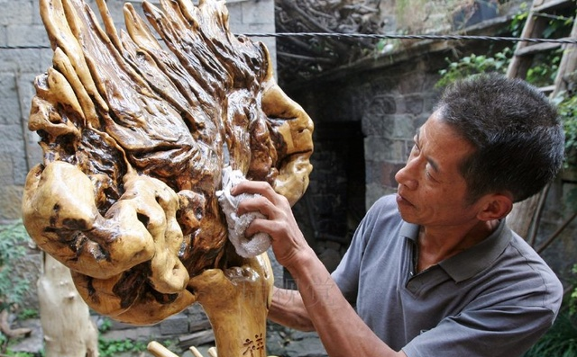 (节点三 根雕文化馆现状 图4为根雕艺人牛国喜)