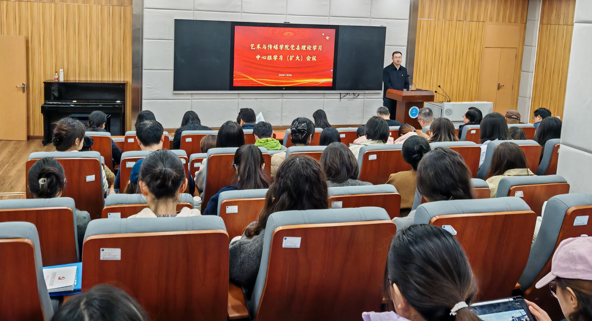 在艺媒楼1104报告厅召开党委理论学习中心组集中学习(扩大)会议,会议特邀请红旗渠精神宣讲团常务副团长、林州市精神文明建设促进中心主任、红旗渠廉政教育果冻传媒
