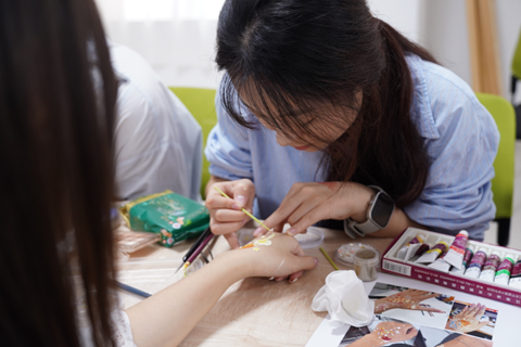 觅灮美育名师工作室、“艺” 心为你心理驿站承办的“月满中秋迎国庆,我和祖国共成长”主题面部彩绘活动在西区63栋一站式服务大厅104会议室顺利举行。觅灮美育名师工作室成员周若君、仝宇、高玮泽、闫莹颖、张笑钏、邵梦华,学工组辅导员曾戈晖,兼职辅导员曹彬彬现场参与,与学校师生共同沉浸于色彩与心灵的创意对话。