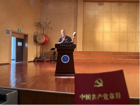 党委副书边建华为与会学生讲授主题为“学党章,悟思想,做合格党员”的党课。